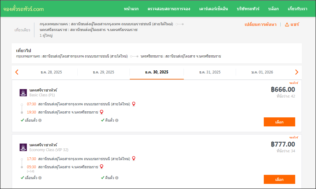 จองตั๋วรถทัวร์.com ได้ร่วมมือกับบริษัทเดินรถต่าง ๆ เปิดให้บริการจองตั๋วล่วงหน้าในช่วงเทศกาลปีใหม่ 2569 ซึ่งท่านสามารถเริ่มจองตั๋วในบางเส้นทางได้แล้วในขณะนี้